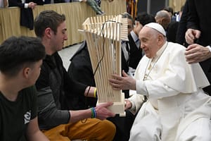 Il Papa riceve una lampada in legno “bostricato” dagli allievi del Cfp ENAIP di Tesero