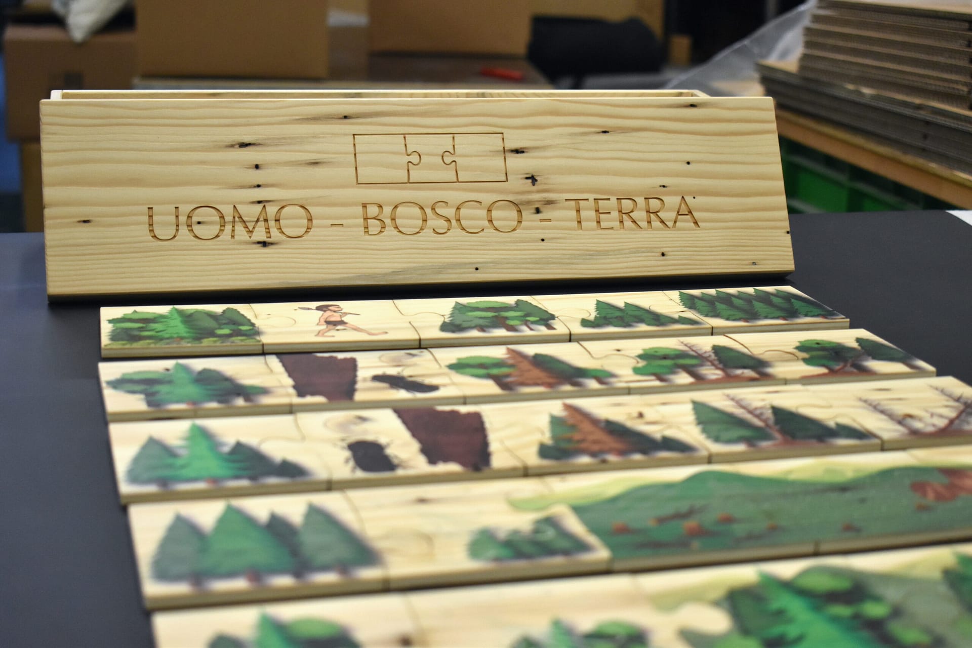 Un materiale Montessori in abete bostricato per educare alla sostenibilità e comprendere il dopo-Vaia.