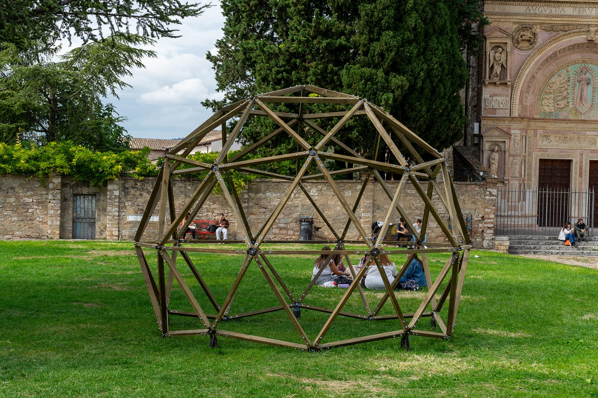 La cupola geodetica realizzata da Margaritelli Road Safety per Seed con legno lamellare di abete bianco certificato PEFC rappresenta un seme e uno spunto di sostenibilità nel campo dell’architettura.